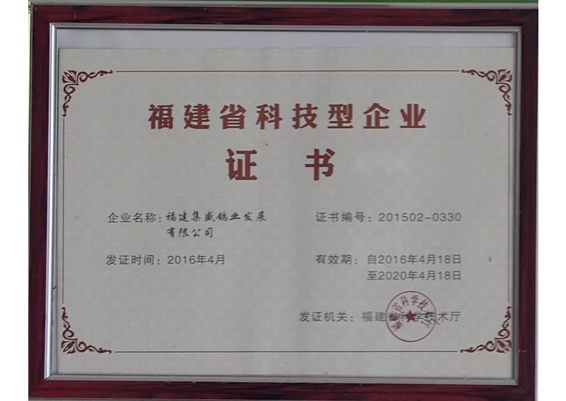 福建省科技型企業(yè)證書